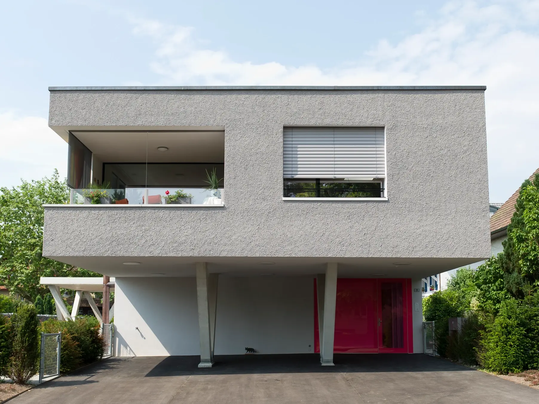 Nouvelle construction d’une maison bifamiliale avec GreoTherm® Système KD: Système d’isolation thermique extérieure à couche épaisse avec panneaux isolants en mousse polystyrène dure expansée (EPS)