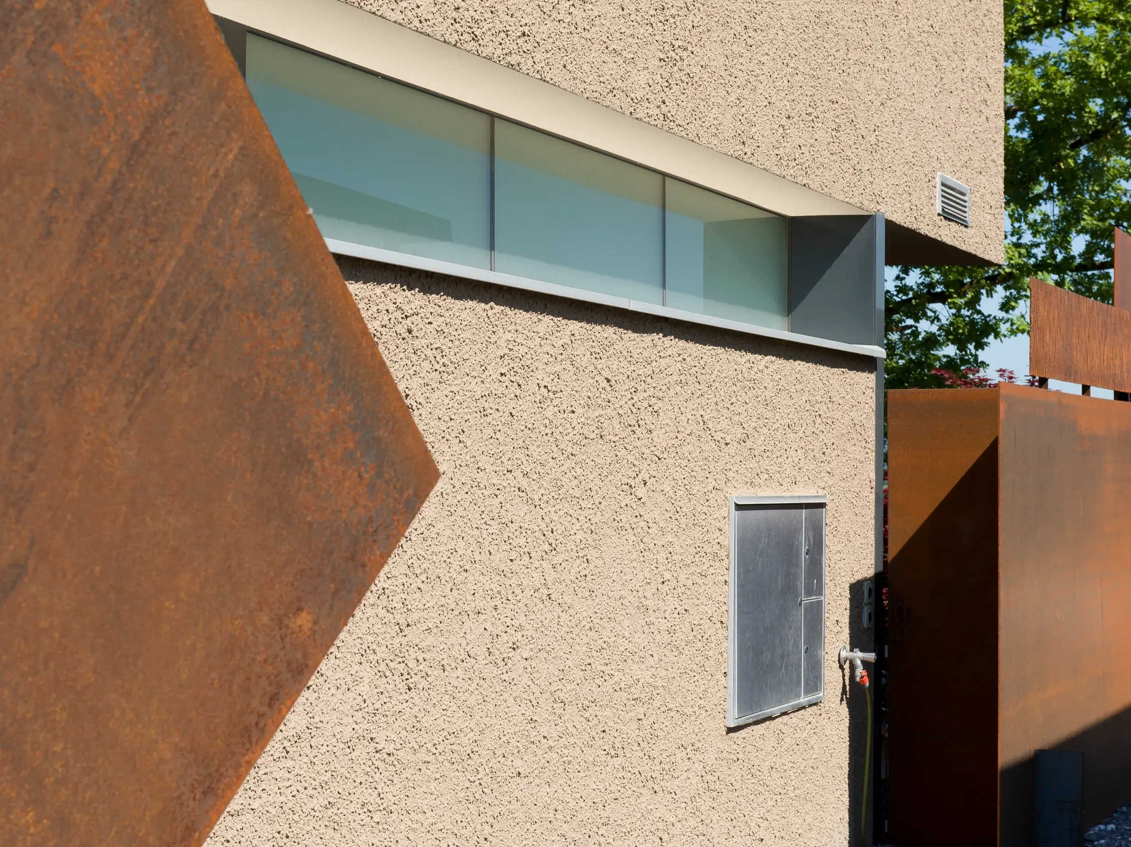 Nouveau bâtiment à une famille avec GreoTherm® Système M-KR : Système d’isolation thermique extérieure à couche épaisse avec panneaux isolants en laine de pierre avec surface à enduit gratté