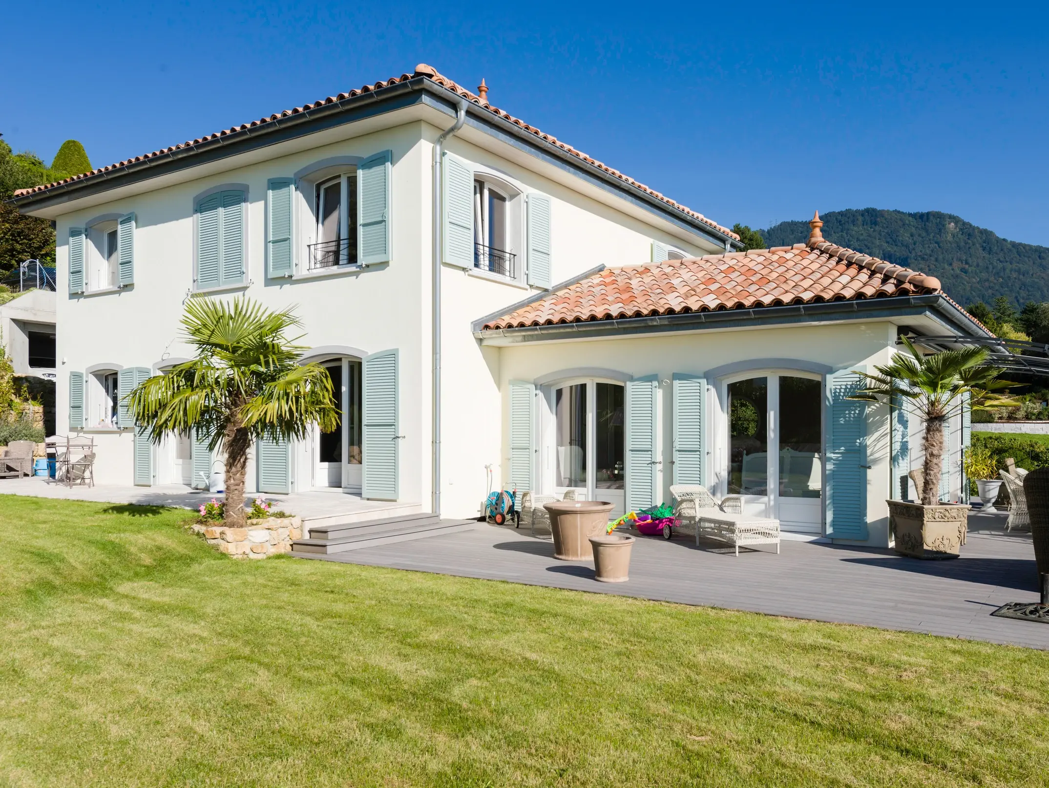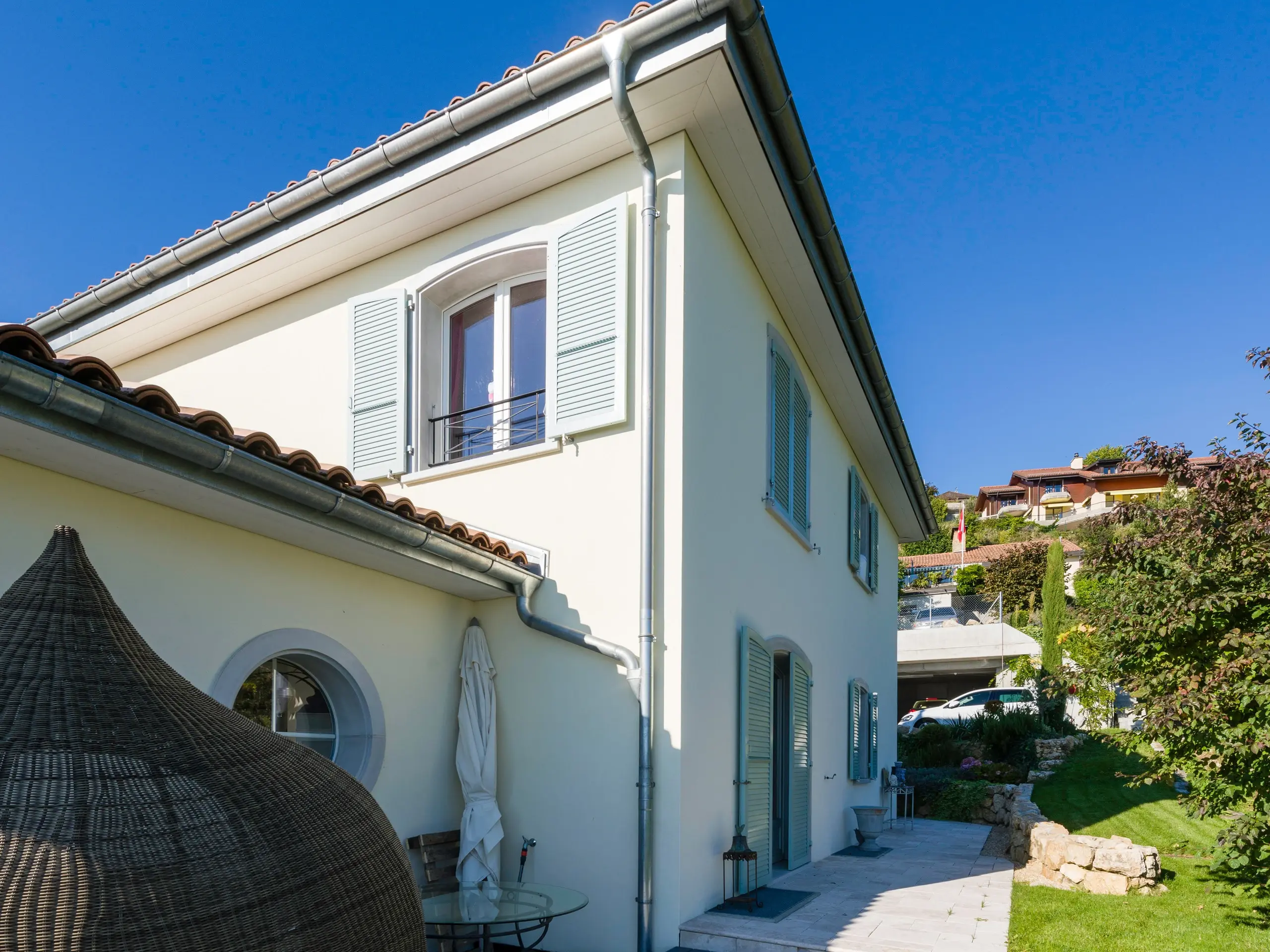 Einfamilienhaus Neubau mit GreoTherm® System VHF-Vento: Vorgehängtes, hinterlüftetes Aussenwärmedämmsystem mit Dämmplatten aus expandiertem Polystyrolhartschaum (EPS), fugenlos verputzt