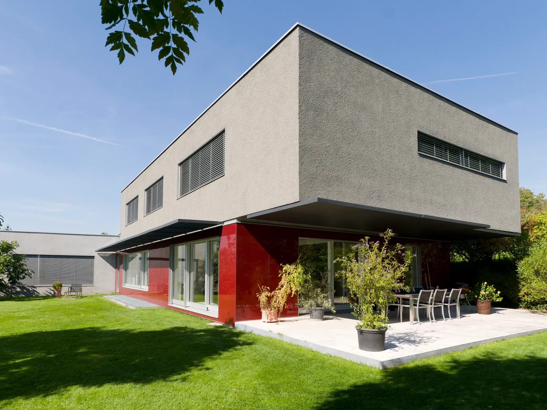 Einfamilienhaus Neubau mit GreoTherm® System M-KR: Dickschichtiges Aussenwärmedämmsystem mit Dämmplatten aus Steinwolle mit Kratzputzoberfläche