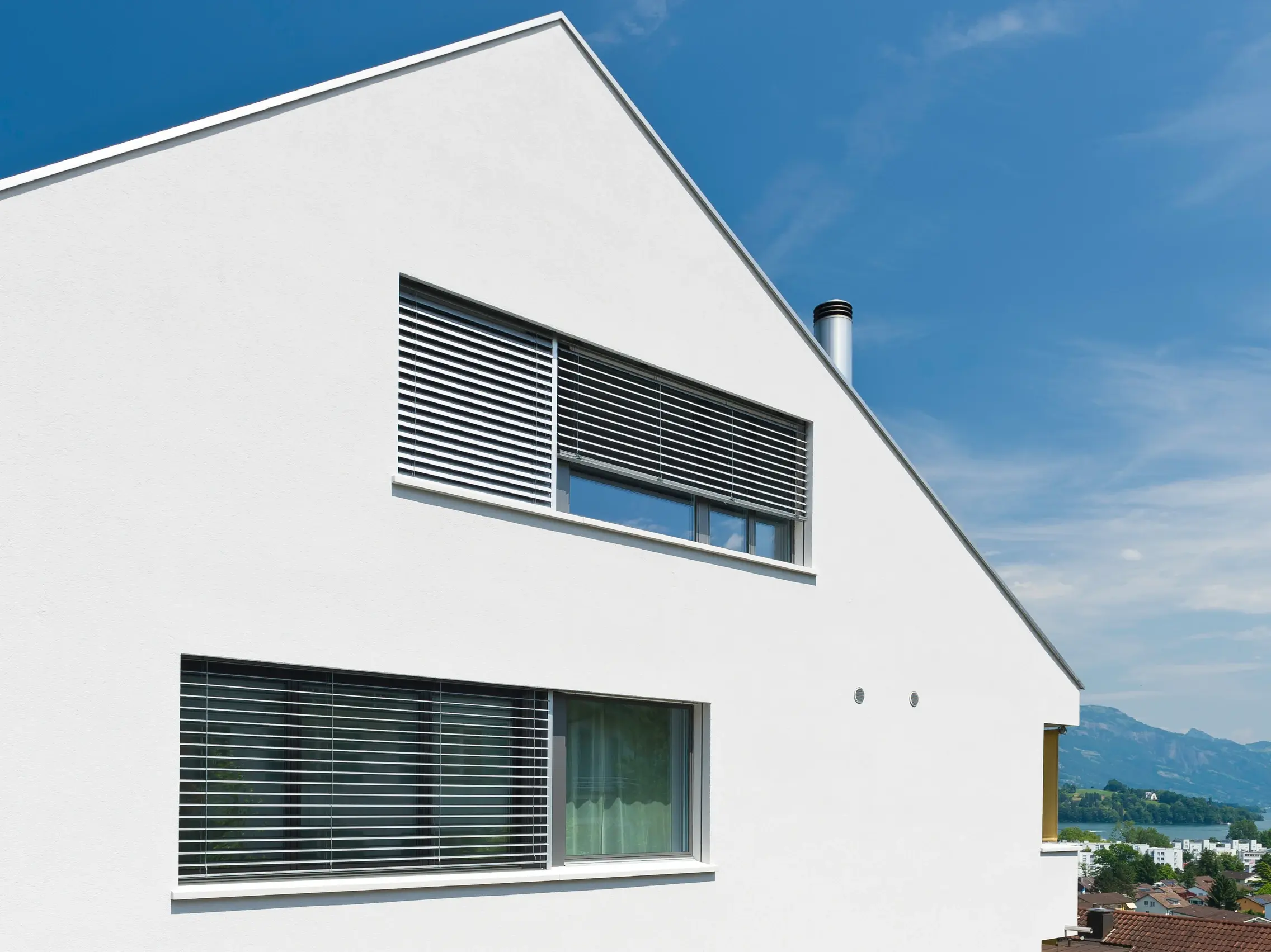 Neubau Zweifamilienhaus mit PuraVision® System HFD: Biozidfreies, hydroaktives Aussenwärmedämmsystem mit Dämmplatten aus Holzweichfaser
