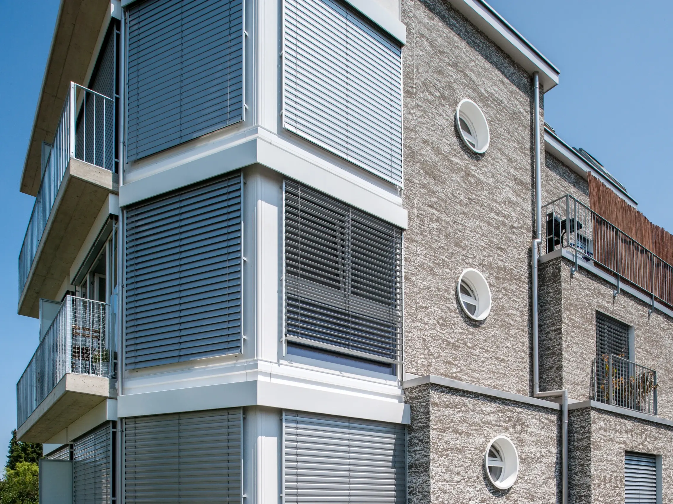 Mehrfamilienhaus Neubau mit PuraVision® System KD: ein biozidfreies, hydroaktives Aussenwärmedämmsystem mit Dämmplatten aus expandiertem Polystyrolhartschaum (EPS)