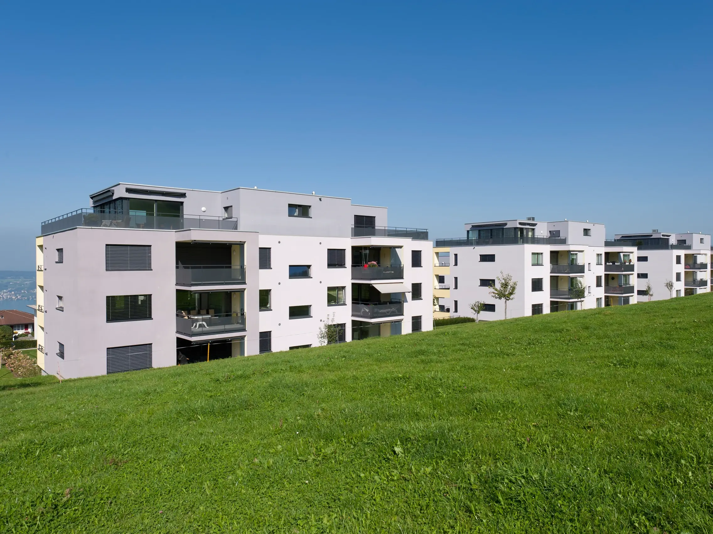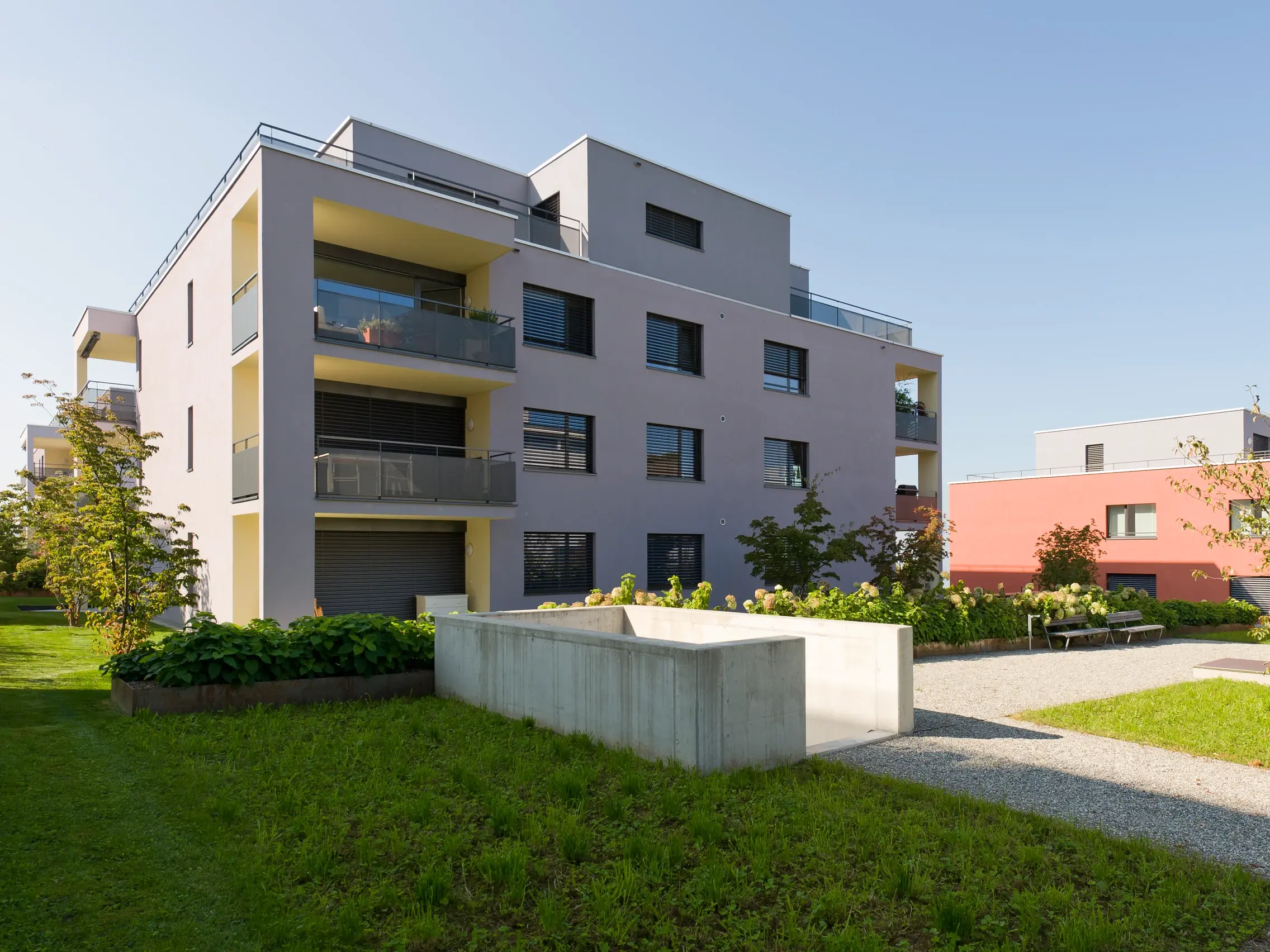 Mehrfamilienhaus Neubau mit PuraVision® System KD: ein biozidfreies, hydroaktives Aussenwärmedämmsystem mit Dämmplatten aus expandiertem Polystyrolhartschaum (EPS)
