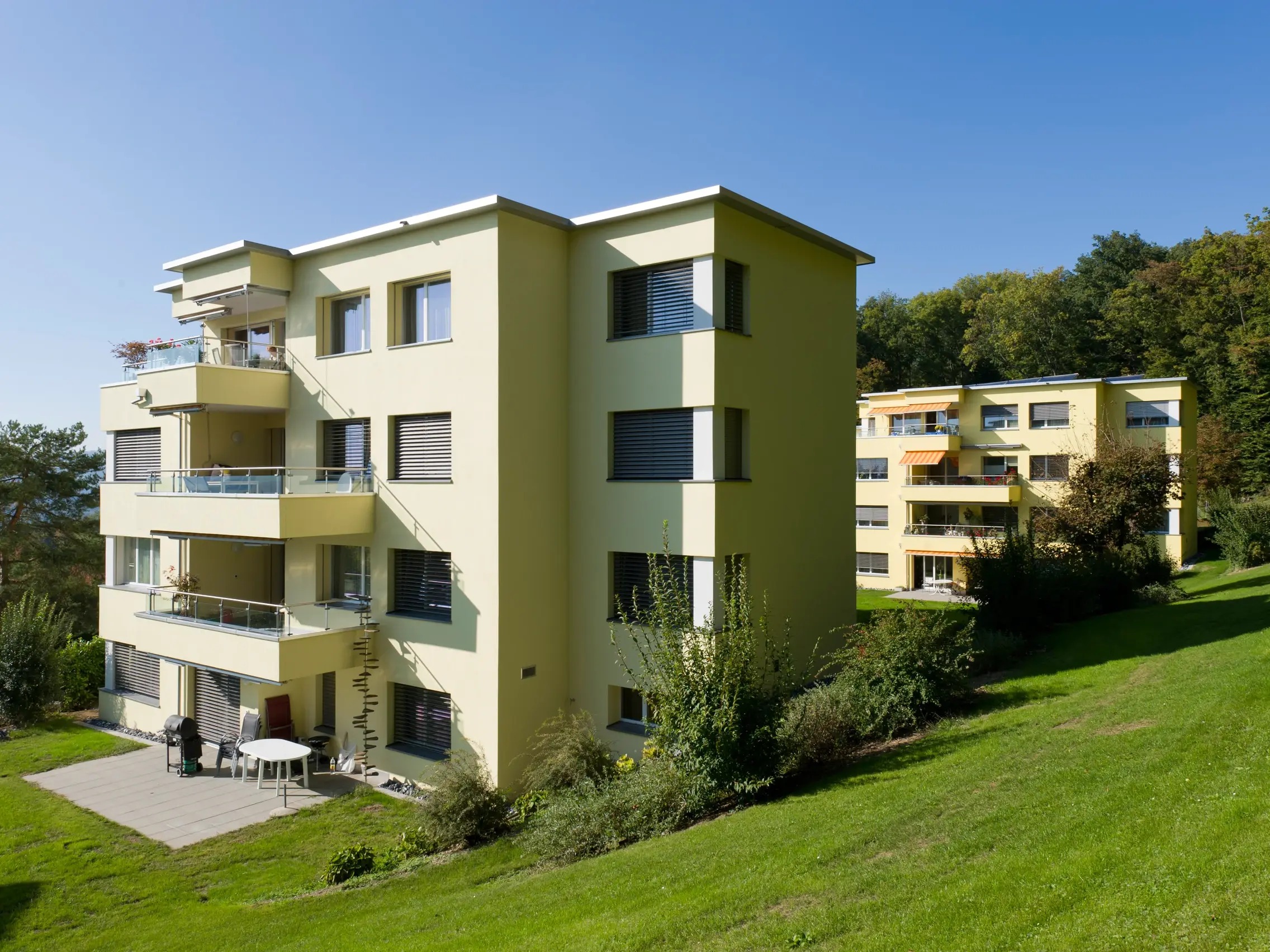 Mehrfamilienhaus Neubau mit PuraVision® System KD: ein biozidfreies, hydroaktives Aussenwärmedämmsystem mit Dämmplatten aus expandiertem Polystyrolhartschaum (EPS)