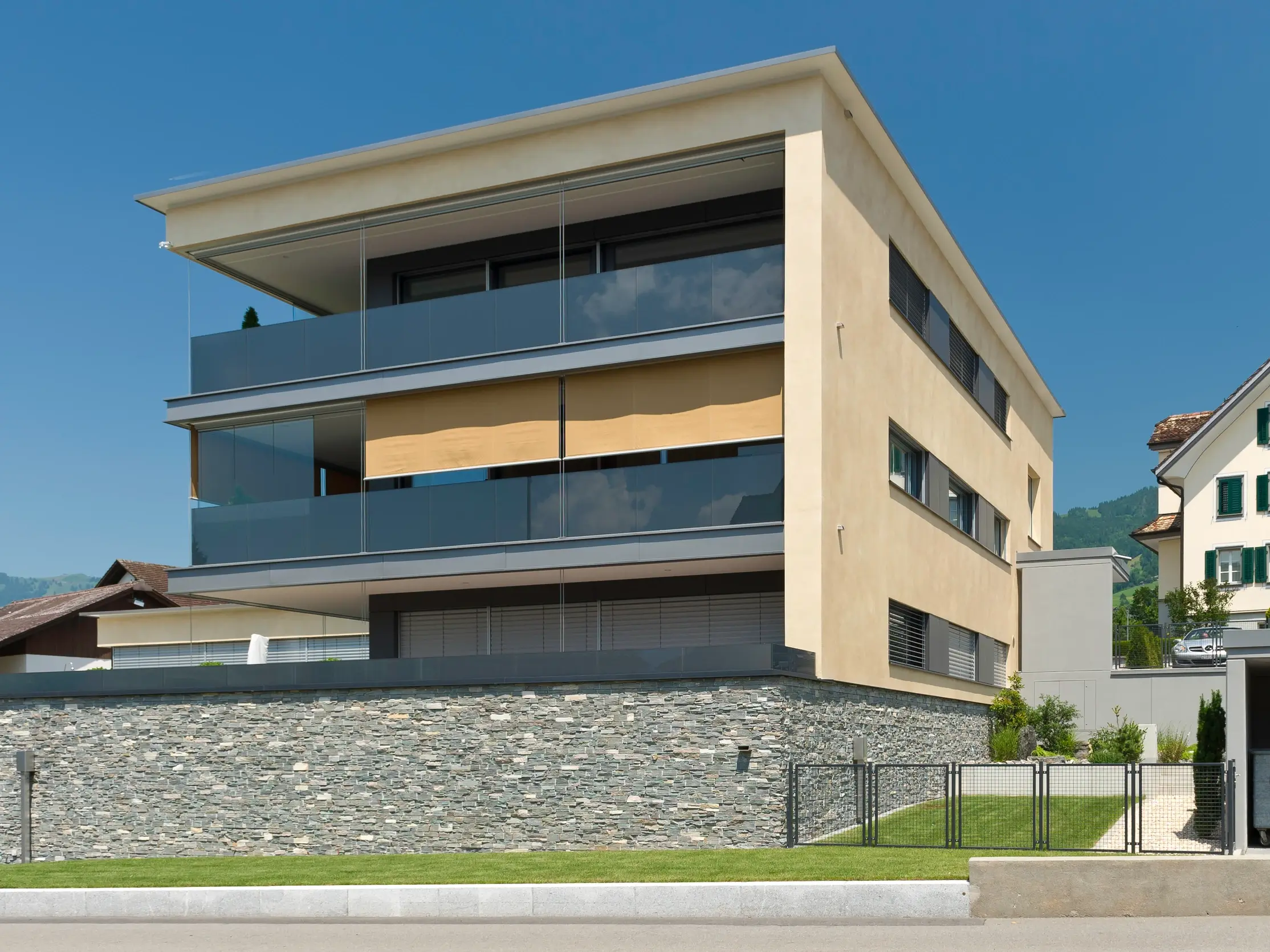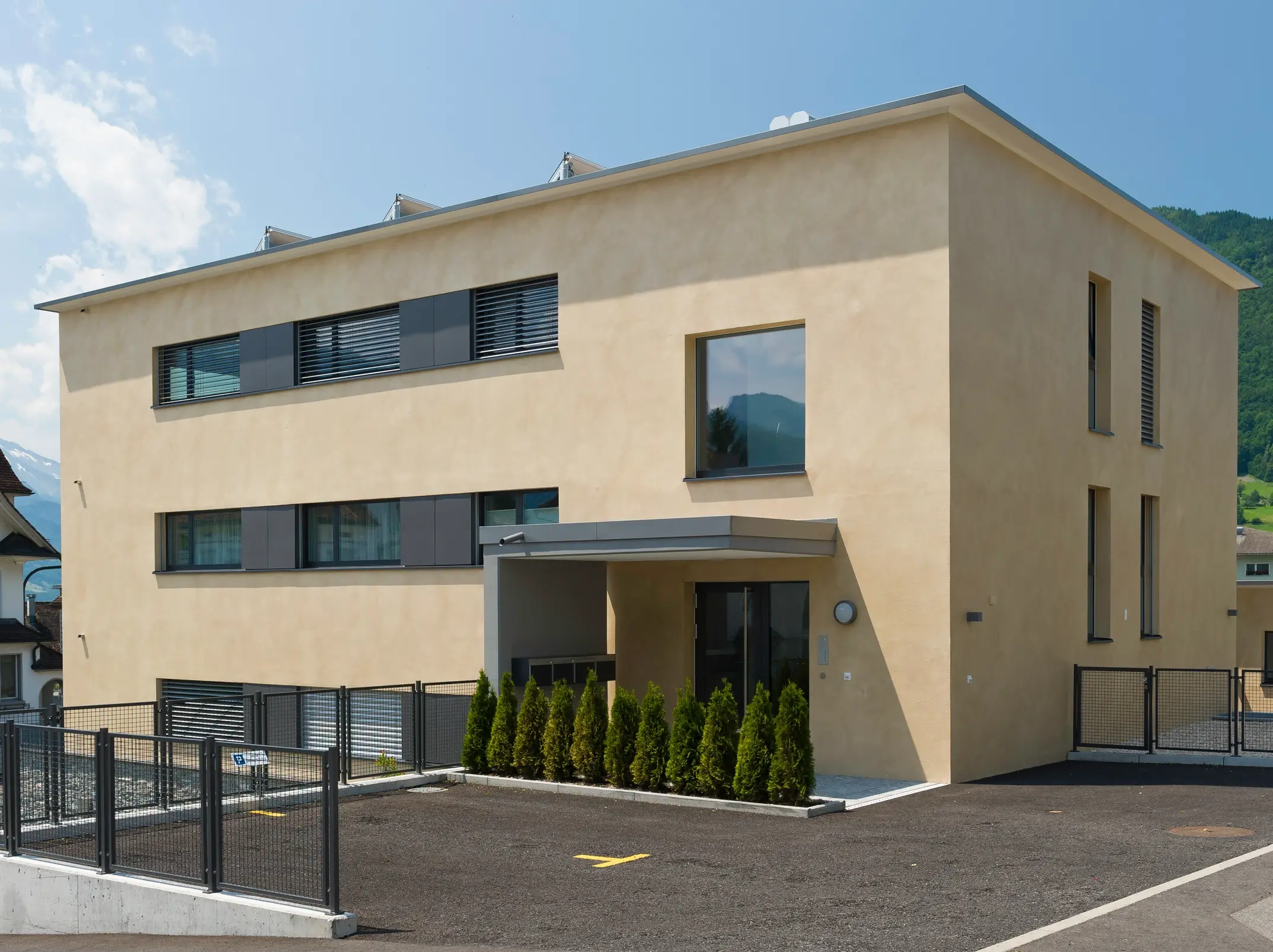 Mehrfamilienhaus Neubau mit PuraVision® System KD: ein biozidfreies, hydroaktives Aussenwärmedämmsystem mit Dämmplatten aus expandiertem Polystyrolhartschaum (EPS)