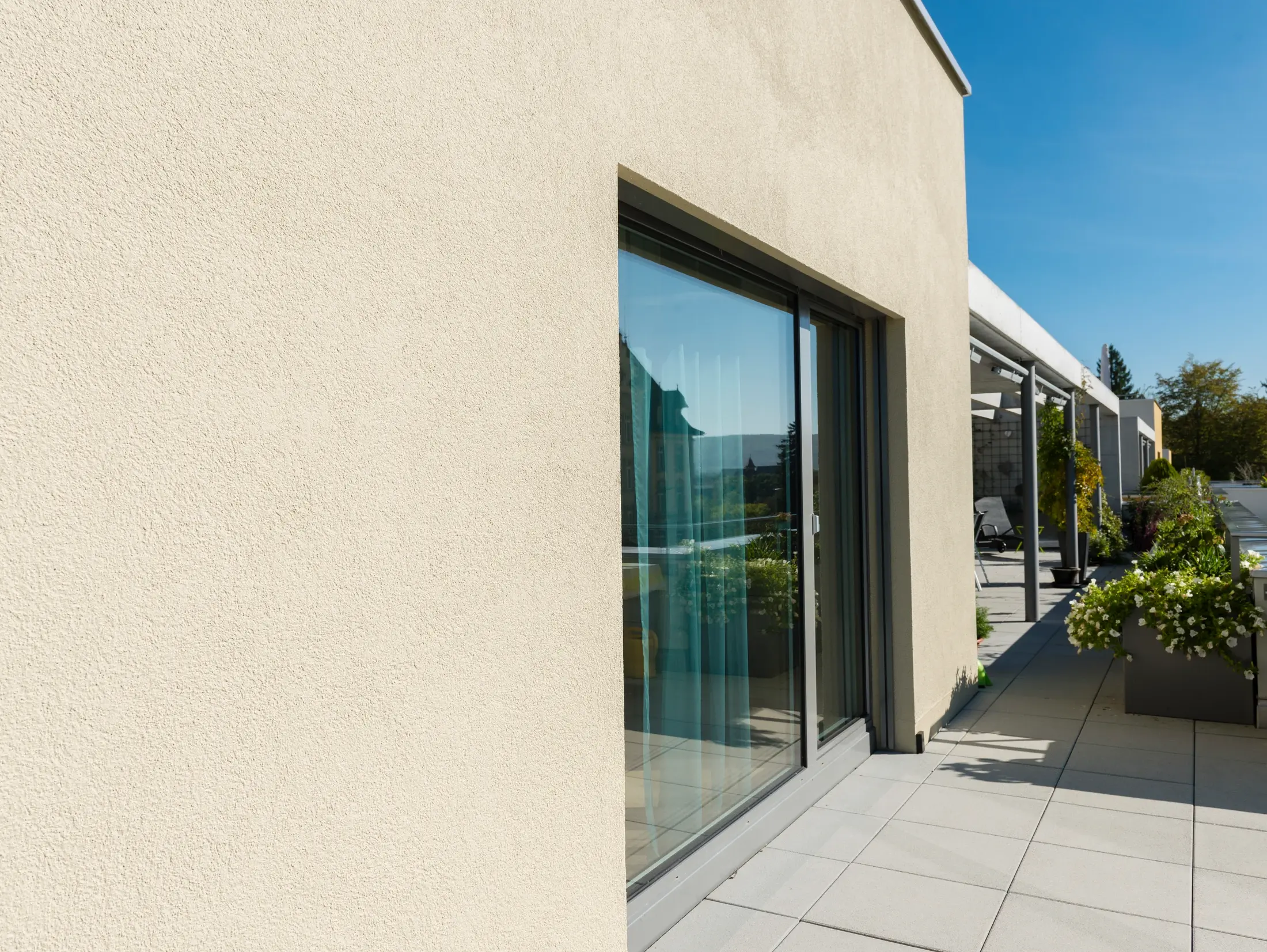 Mehrfamilienhaus Neubau mit PuraVision® System KD: ein biozidfreies, hydroaktives Aussenwärmedämmsystem mit Dämmplatten aus expandiertem Polystyrolhartschaum (EPS)
